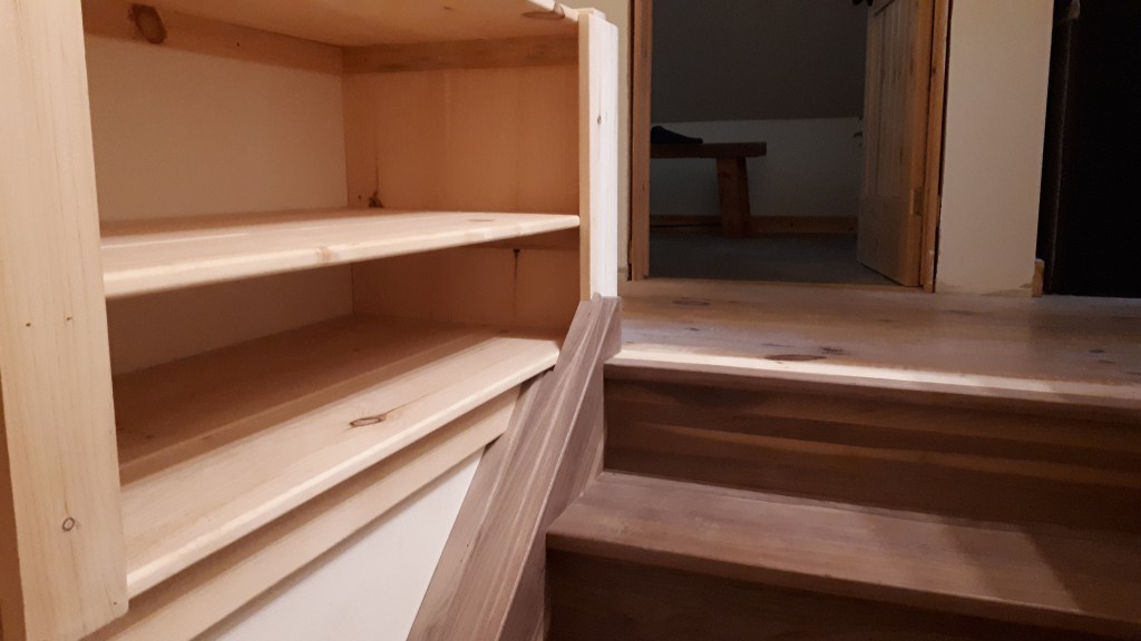 Black Walnut Stair Case with Pine Shelving