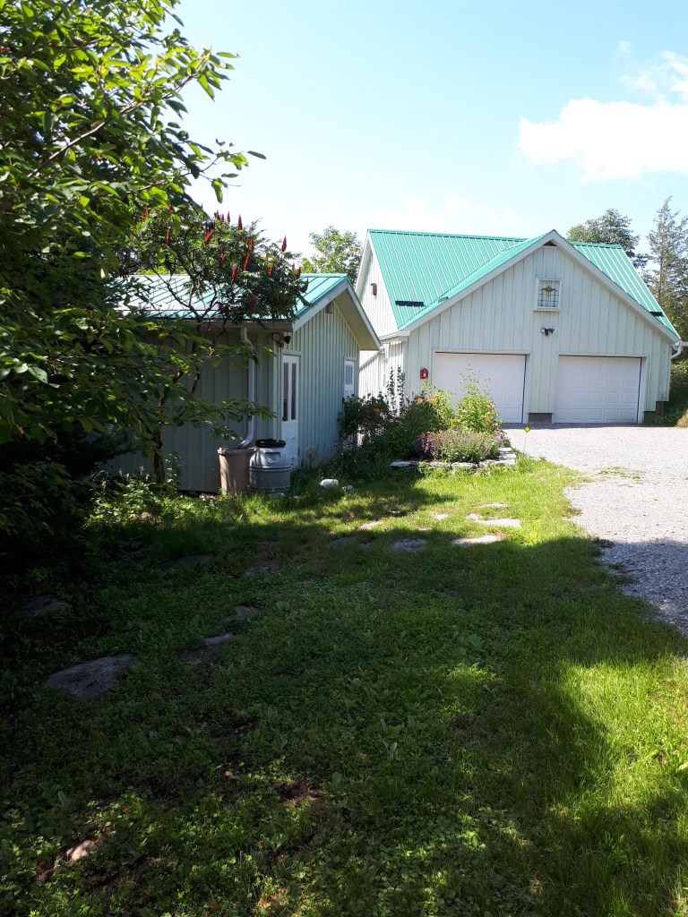 Garage with Wood Shed Addition to House.